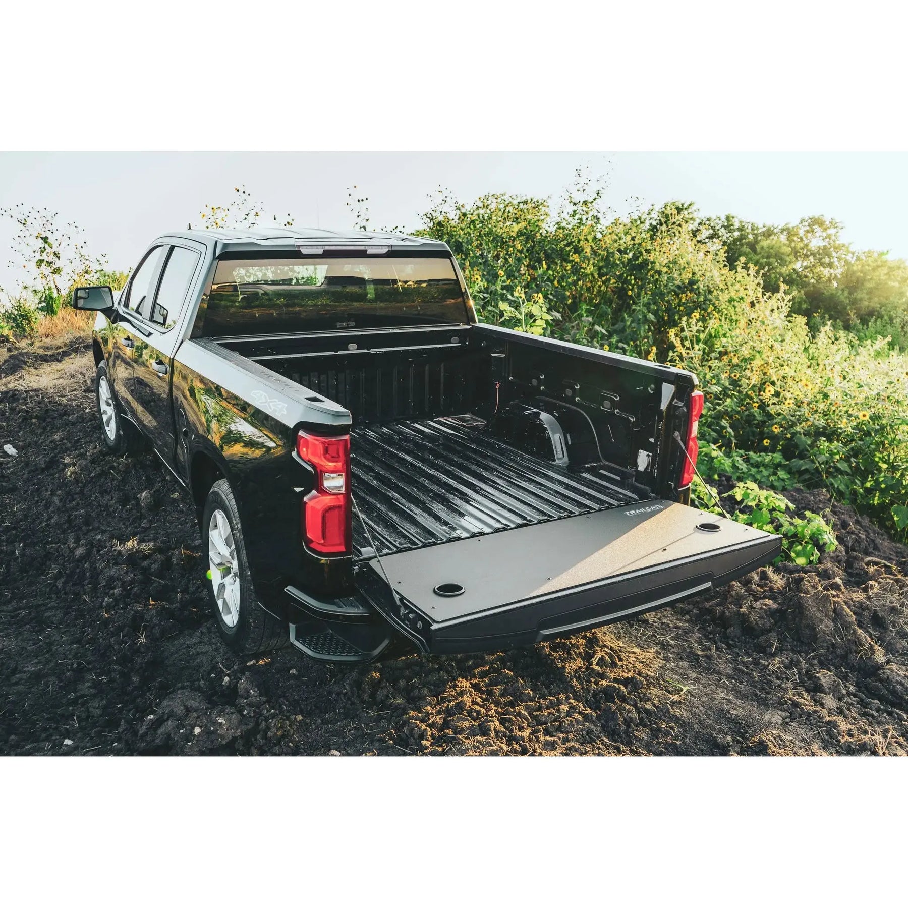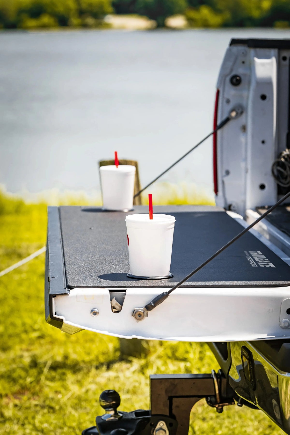 - T-Slot Bed Rails machined to precision to fit the OEM Rivian Bar Mounts including a mechanical pass-through button for the Rivian Gear Tunnel.